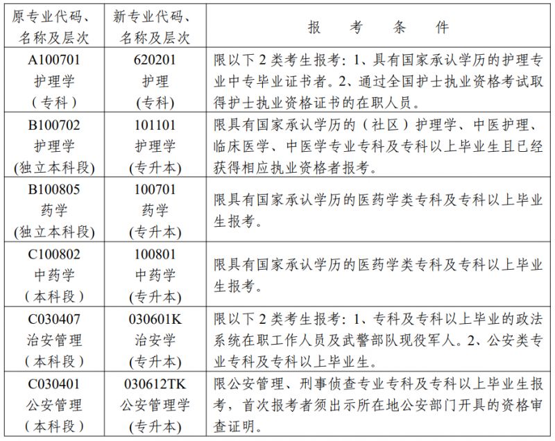 下表所列專業(yè)對報考條件、報考程序有特殊限制,考生報考須符合下表具體規(guī)定。在考試任何環(huán)節(jié)發(fā)現(xiàn)報考者不符合報考條件的,該考生不論何種原因,都要承擔(dān)不被承認考試結(jié)果、不被受理畢業(yè)申請的后果。